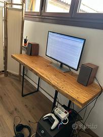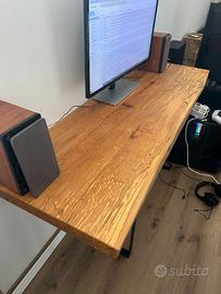 Vendo scrivania in legno massello con finitura naturale e look industrial. Piano spesso e robusto, con venature e segni del legno a vista (molto bella dal vivo), ideale per postazione PC, smart working o studio. ✅ Struttura solida e stabile ✅ Gambe in metallo nero (stile minimal) ✅ Superficie ampia: ci sta comodamente monitor/PC + accessori ✅ Perfetta anche come tavolo da lavoro / console ✅ E' preferibile attaccarla ad un muro per questioni di stabilità. Condizioni: ottime, normali segni di utilizzo sul piano ma niente di grave (come da foto). Ritiro a mano (scrivania già montata / smontabile facilmente). 📩 Per info, misure o altre foto scrivimi in chat.