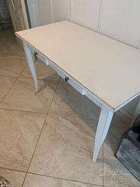 Vendo scrivania in legno, stile classico, ridipinta, ottima qualità (presa in un mobilificio con marchio sulla scrivania). Dimensioni 60x120x76