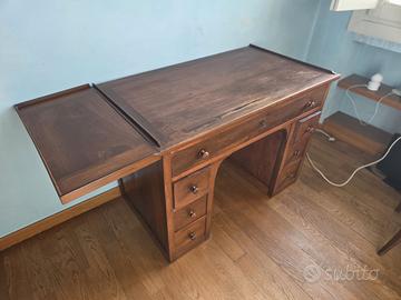 Scrivania in legno massello con piano estraibile laterale. Dimensioni: 115x 80x65 cm. Con allunga 146 cm.