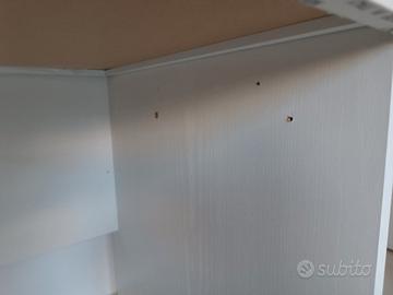 Vendo scrivania con libreria e cassetto, di legno bianco.