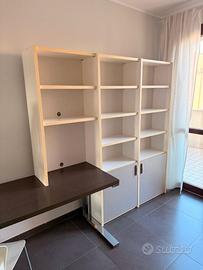 Larghezza totale libreria 278,5 cm, larghezza dalla scrivania 190,5 cm, H 196,5, pr. 32,5 cm.