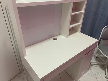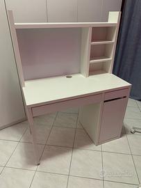 Ciao,Vendo scrivania più sedie.Tenuta bene .come nuova.Perché devo tingere e la bimba non la usa piu.E alta 75,lunga 105,larga 50,il piano sopra è alto 65.per un totale di 140cm.