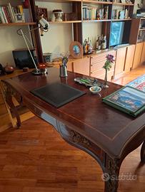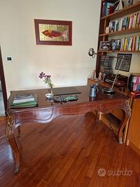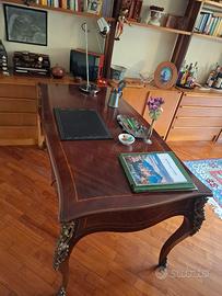 scrivania antica elegante in legno con accenti in metallo. Con cassetti e in condizioni perfette lunghezza: 1.60m profondità: 0.80m altezza: 0.80m
