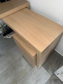 Scrivania con cassettiera usata da 2 anni, piano in buono stato, struttura stabile e funzionale. Tenuta bene, con una sola piccola scheggiatura su un angolo.( visibile in foto). Vendo esclusivamente per cambio scrivania.