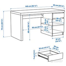Scrivania Malm Ikea con cassetto e ripiani Dimensioni 140x65 cm Colore bianco Ottime condizioni Prezzo: 90€ (anziché 140€) Solo ritiro a mano