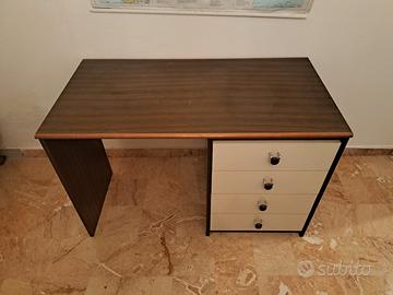 scrivania marrone con 4 cassetti bianchi, buono stato generale