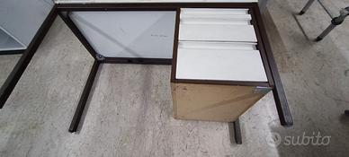 vendo solida scrivania in metallo ( non saldata ma bullonata) con cassetti in metallo e piano in legno, piedini regolabili max 3,5cm. misura Cassettiera : L 37 cm, H 21cm, H 16cm, H 8cm P 51 cm (tutti e tre i cassetti ) misure scrivania : L 120 cm P 60cm H 69 cm . vendo a € 25