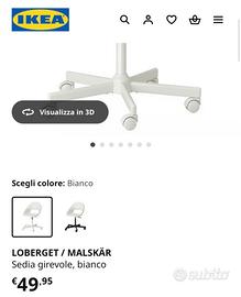 Scrivania Micke Ikea, di colore bianco, con angolo leggermente sbeccato come si vede in foto + sedia Loberget Ikea senza difetti, provvista di rispettivo cuscinetto rosso.