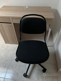 Vendo scrivania micke 105l x50p x75h e sedia orfjall ikea condizioni pari al nuovo , in vendita nuove a 85 la scrivania e 60 la sedia sul sito ikea . Le vendo insieme , prezzo si riferisce alla coppia . Ritiro a mano del mobile già montato.