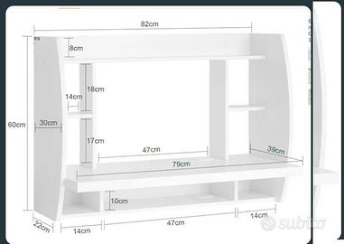 Cedo scrivania usata ma in ottime condizioni, montata ma solo appoggiata su altra scrivania, mai attaccata al muro. Marca SoBuy - Tavolo da muro - Scrivania-Tavolo per Computer -Libreria -bianco. Misure come da foto