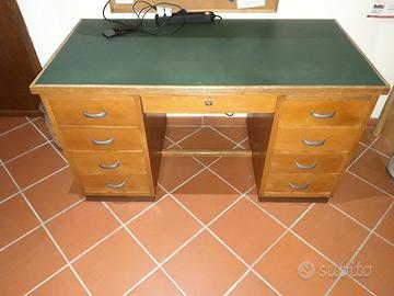 vendo scrivania ministeriale 140x70x75 anni 70 . appena restaurata . superficie del piano con qualche segno di usura e in qualche punto il legno presenta i segni del usura .