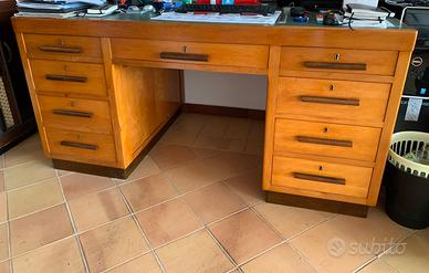 Scrivania ministeriale restaurata una decina di anni fa, piano in vilpelle verde originali. Segni del tempo, dimensioni 160x90cm. Prezzo trattabile, venduta nello stato in cui si trova.