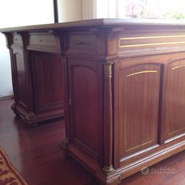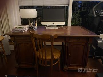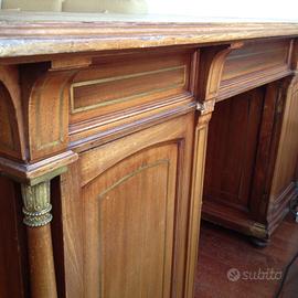 Grande ed elegante scrivania ministeriale fine Ottocento / prima metà del Novecento, in rovere. Condizioni buone. Dimensioni 160x95