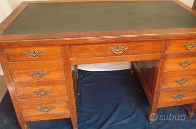 Stesso stile della scrivania il mobile composto da 10 cassetti e da una serrandina scorrevole dall'alto verso il basso con apertura superiore con chiave; il piano superiore con un riquadro rivestito in panno verde è ribaltabile e si trasforma in leggio.