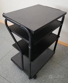 Scrivania mobile, su rotelle, porta computer, stampante e tastiera. Struttura in metallo con ripiani in legno trucciolare, in buone condizioni usato pochissimo, Dim. largh. 63, prof. 46, h. 80 cm. Tot. € 35,00 Ritiro a Mestre