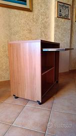 Vendo mobile per studio e/o cameretta, che funge da scrivania e da mobile portacomputer. Realizzato in legno color ciliegio. Dimensioni L 90 x P 48,5 x H 80 cm. Dotato di ruote piroettanti e piano estraibile. Condizioni pari al nuovo. Ritiro a carico dell'acquirente a Bracciano (RM).