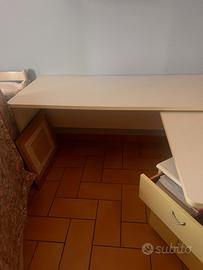 Scrivania camera bambina/o bianca e gialla. .c è una parte allungabile con le ruote da estrarre dal piano .