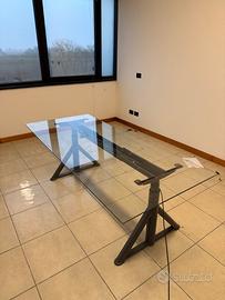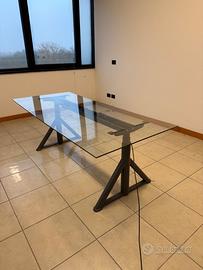 Tavolo regolabile elettrico motorizzato tramite pulsante o APP Bluetooth. Con Vetro anti infrangente doppio strato 200 cm X 80 cm circa. Altezza regolabile da 60 cm a 150 cm .