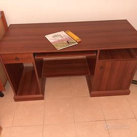 Spaziosa scrivania in legno molto robusta e con porta computer, cassetto e mobiletto laterale. Dimensioni: Lunghezza cm 142-Altezza cm 74-Profondità cm 60. Condizioni ottime Inoltre insieme è venduto il comodino coordinato