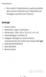 Scrivania Vida XL in legno Multistrato nero nuova, ancora impacchettata. Dimensioni 140x50x75 cm.