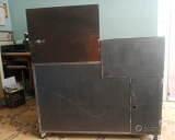 Scrivania o consolle. Costruita su misura come postazione computer fisso, si adatta benissimo anche da scrivania. Poggia su 4 ruote bloccabili che ne permettono lo spostamento con estrema facilità. Trattamento al ferro antiruggine. Contiene a scomparsa il posto per il case del computer fisso e quello per la stampante.