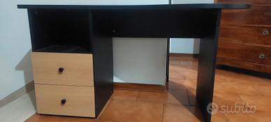 scrivania in ottime condizioni, nera e legno chiaro, 2 cassetti e uno scomparto a vista.