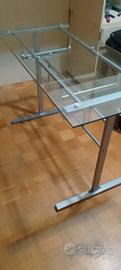 Elegante scrivania in ferro laccato grigio e vetro con sotto ripiano scorrevole anch'esso in vetro. Misure 115 cm x 55 cm alta 70 cm.