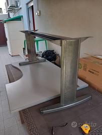Vendo scrivania piano d'appoggio grigio perla, stondato con spessore di cm.3, l. cm. 160 x 100 mentre la parte piu' stretta e' di cm.80. supporto in metallo grigio fissato con 4 viti di corredo