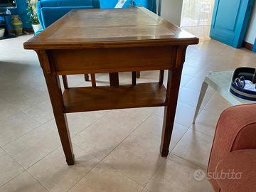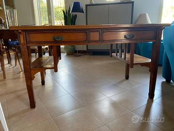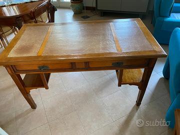 Scrivania, falegnameria artigianale, disegno Ducrot del 900. Color noce. Piano in pelle. Quattro cassetti contrapposti con chiave.