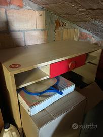Come da titolo vendo scrivania IKEA in legno chiaro con cassetto chiuso porta oggetti rosso.