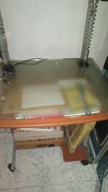 vendo scrivania compatta per PC in vetro e legno con ruote