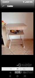 Vendo scrivania porta pc in perfette condizioni, con cassetto e ripiano di appoggio per testiera/stampante. . Si sposta facilmente grazie alle 4 ruote. Misure: 58 x 51 h 78. Colore: rovere sbiancato, metallo bianco.