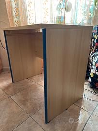 Scrivania Legno Chiaro con Bordi Blu - Già Smontata