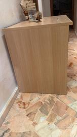 • Finitura: Il colore è un legno naturale chiaro con venature orizzontali ben visibili. È una tonalità neutra che si adatta facilmente a diversi tipi di arredamento moderno o classico.