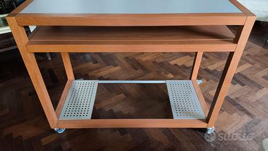 Scrivania ideata e prodotta dalla nota azienda italiana Calligaris. Presenta parti in legno massello e in metallo. Ha tavolette laterali e piano di appoggio tastiera scorrevoli (su binari metallici) e molto stabili. Bella esteticamente e eccezionalmente funzionale, presenta anche due solidi piani di appoggio lateralmente in basso. Struttura molto solida ma agevolmente spostabile grazie a delle perfette ruote bloccabili.