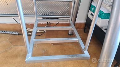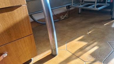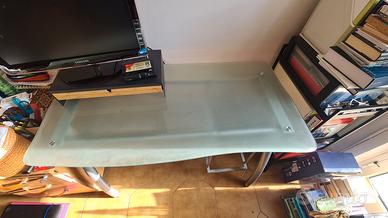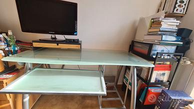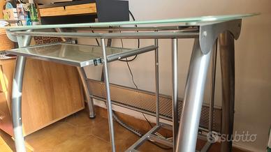 Base in vetro ondulata nella parte anteriore. Comoda, con porta PC e porta tastiera scorrevole.