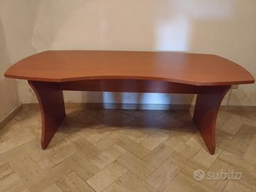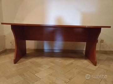 Ampia scrivania in stile moderno, in ottime condizioni, ideale per lo studio e il lavoro in ufficio o a casa. Solida, pratica e durevole, dotata di piedini in metallo, proteggono il pavimento dai graffi e la rendono stabile anche su superfici leggermente irregolari. Con il suo colore legno si adatta ad ogni tipo di arredo.