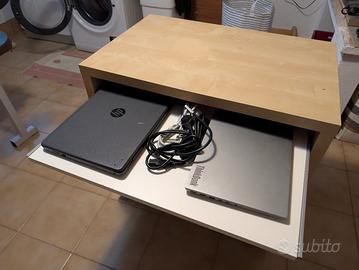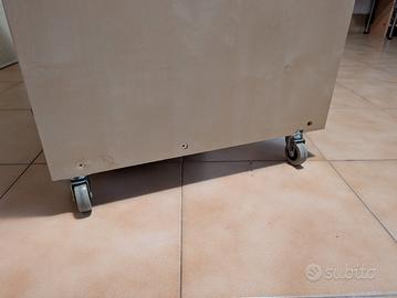 Vendo scrivania da computer ikea alla quale mio padre ha montato 4 ruote sotto le due gambe principali, le ruote funzionano ancora benissimo, hanno l'appoggio a terra in gomma.