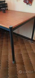Scrivania ad angolo legno color ciliegio, con altezza regolabile. Dimensioni: larghezza 206, profondità lato corto 80, profondità lato lungo 126. Altezza 70, regolabile.