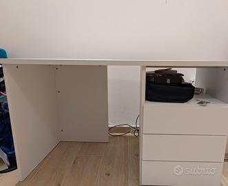 La scrivania ha 6 mesi di vita è bianca ed è 100x60 di profondità. possibilità di smontarla e inviarla in scatolone grande. completa di tre cassetti belli capienti come dimostra foto. per qualsiasi info contattare