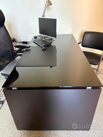 Scrivania per studio in legno color testa di moro e ripiano in cristallo fumé. Ottimo stato. Misura cm 90x180 h. 70 cm. Vendo su Roma e provincia trasporto a carico acquirente
