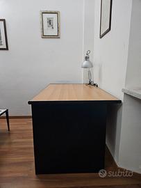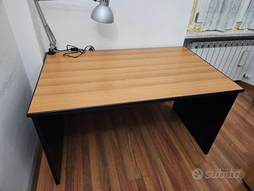 Scrivania in legno marrone e nero in ottimo stato, perfetta per una camera oppure uno studio. 130 cm di larghezza per 80 cm , 72 cm di altezza. Con possibilità di spedizione in Umbria.