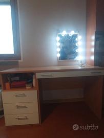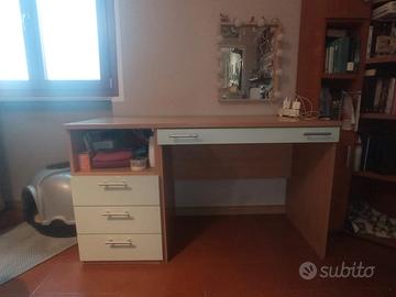 Bella scrivania per camera studio, con un largo cassetto sotto piano scrivania, molto comodo e 3 cassetti a lato molto capienti .