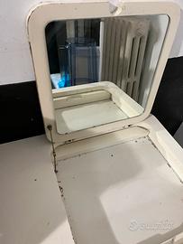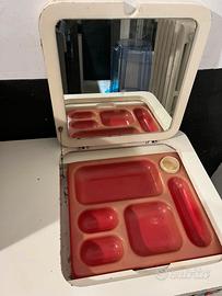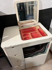 Petineuse, mobile vintage space age composto da scrivania con poltroncina collegata che ruota, cassettiera e ripiano con specchio apribile con contenitore per trucchi e gioielli. Dato il peso è possibile solo il ritiro