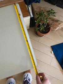 Piccola scrivania, truttura in metallo bianco e piano in vetro misura 60x48 cm