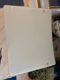 Piccola scrivania con struttura in metallo bianco e piano in vetro misura 60x49