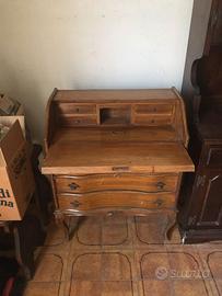 Scrivania pieghevole con tre cassetti esterni e 4 cassettini interni. Legno vero perfette condizioni