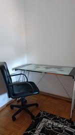 Vendo scrivania in vetro resistente color nero e argento misure 60 x 1,20 altezza 80 cm con sedia in ecopelle scorrevole color nero
