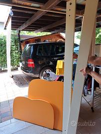 regalo scrivania 90x60 come da foto e testiera letto singolo 190x80 , solo una parte della testiera ha gli agganci rotti, evidenziati in foto, per il resto in buone condizioni, senza botte o graffi.