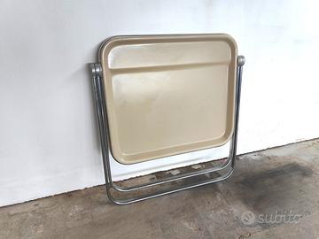 Disegnata da Giancarlo Piretti per Anonima Castelli nel 1960, dal design funzionale può essere ripiegata e riposta per essere usata quando necessario; la scrivania pieghevole è parte della storia del design italiano, parte della collezione Plia, Plona e Platone presenti al museo moma di New York. Presenta segni di usura, ma è in buone condizioni. Il colore della plastica è sabbia e il metallo è cromato.
